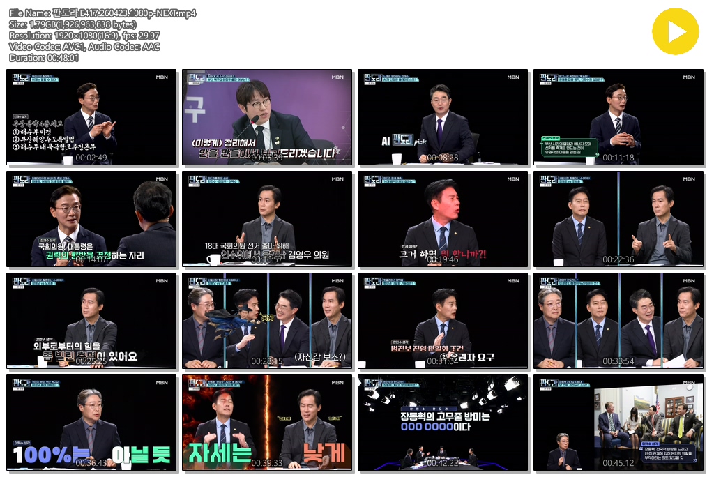 cast 동영상 판도라 E417 NEXT 판도라.E417.260423.1080p-NEXT personse*** calendar_today2026.04.23 visibility7,092 download 다운로드 1개 파일 folder_zip 판도라.E417.260423.1080p-NEXT.mp4 1.8 GB download