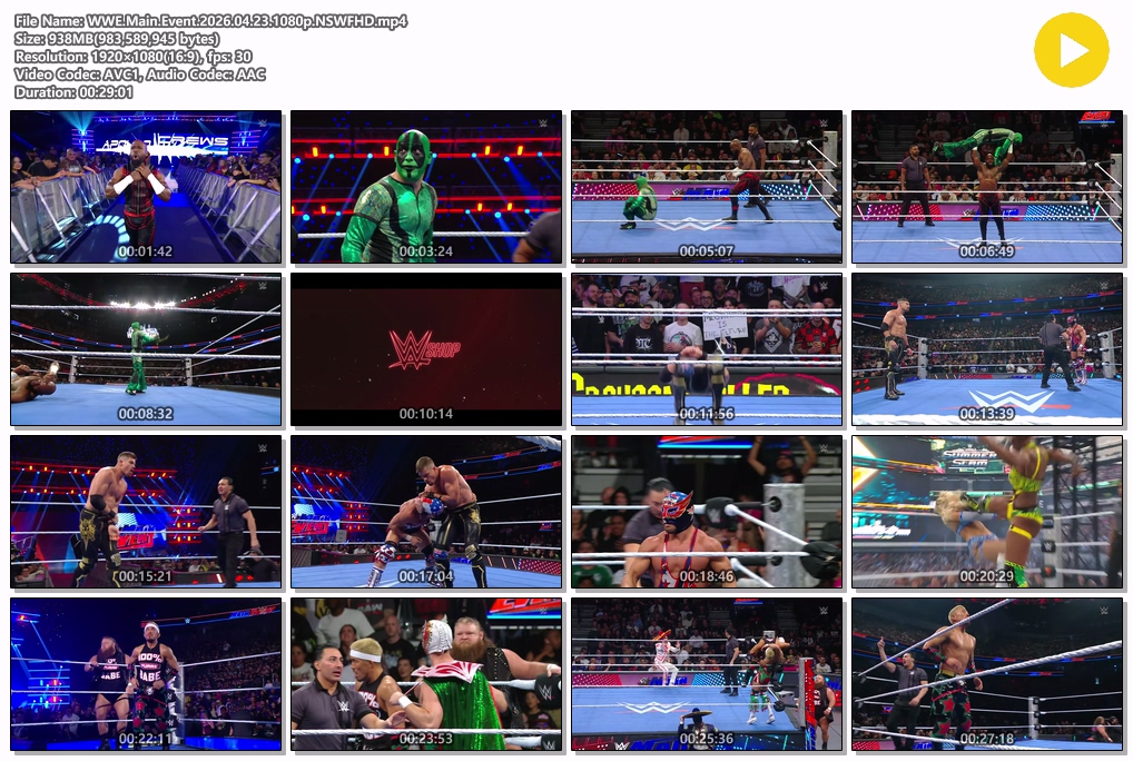 cast 동영상 WWE Main Event [핖.WWE] Main.Event.26.04.23 [1080P] personMJ*** calendar_today2026.04.27 visibility6,276 download 다운로드 1개 파일 folder_zip WWE.Main.Event.2026.04.23.1080p.NSWFHD.mp4 938 MB download