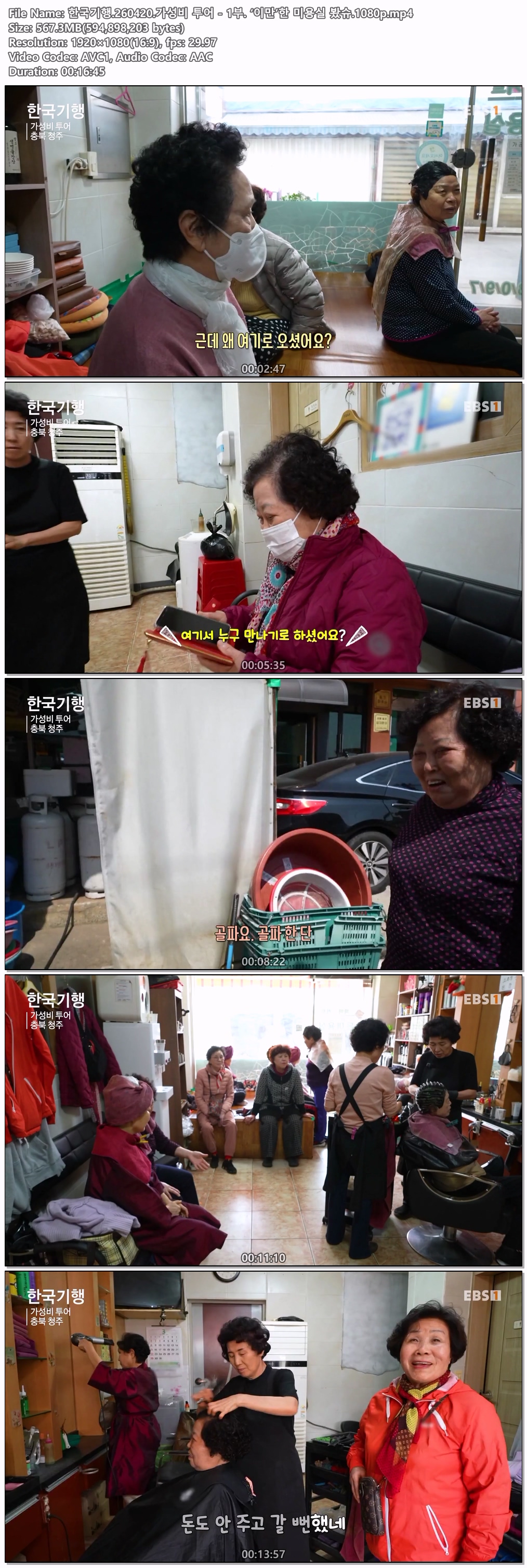 cast 동영상 한국기행 가성비 투어 한국기행.260420.가성비 투어 - 1부. ‘이만’한 미용실 봤슈.1080p personiq*** calendar_today2026.04.20 visibility4,781 download 다운로드 1개 파일 folder_zip 한국기행.260420.가성비 투어 - 1부. ‘이만’한 미용실 봤슈.1080p.mp4 567 MB download