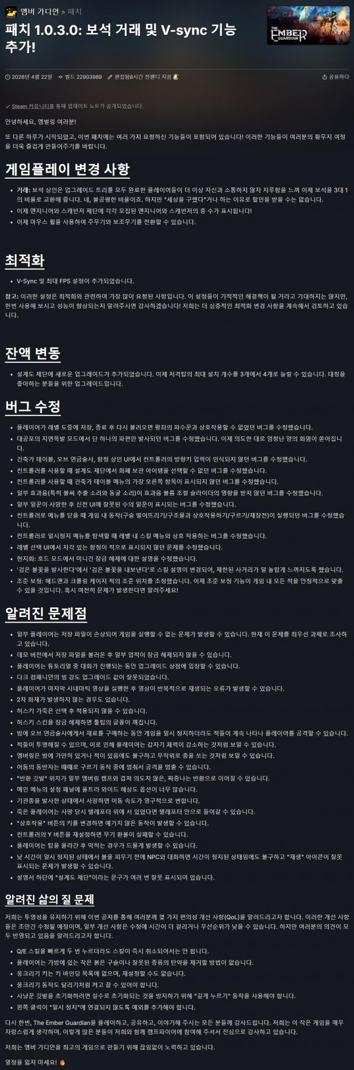 [한글무설치]더 엠버 가디언 The Ember Guardian v1.0.3.0