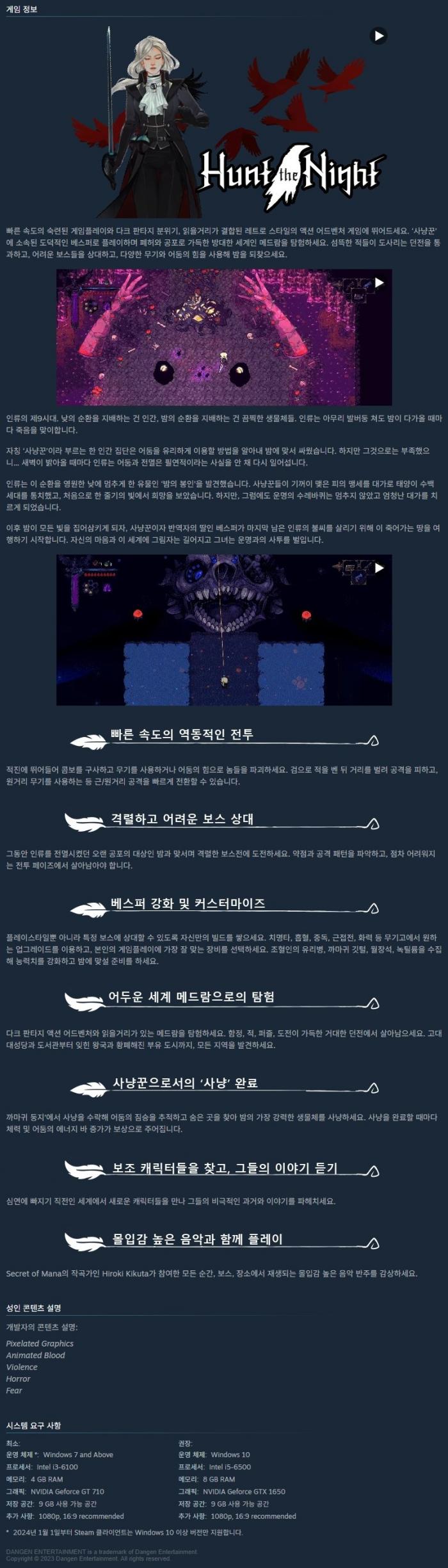 Hunt the Night 응용프로그램 실행