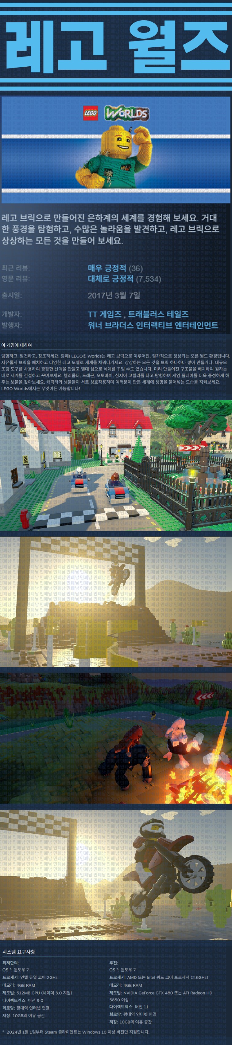 sports_esports 게임 한글무설치 레고 월즈 [한글무설치] 레고 월즈 v20190709 personze*** calendar_today2026.04.21 visibility3,706 실행LEGO_Worlds_DX11.exe19.07.09 update 이지크립트:0000 download 다운로드 1개 파일 folder_zip LEGO Worlds.7z.ezc 3.1 GB download