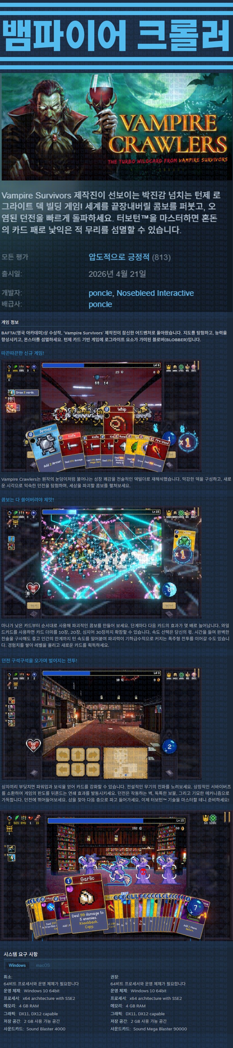 sports_esports 게임 한글무설치 뱀파이어 크롤러 [한글무설치] 뱀파이어 크롤러 v1.4.0 personze*** calendar_today2026.04.22 visibility4,726 실행Vampire Crawlers.exe26.04.21 신작 이지크립트:0000 download 다운로드 1개 파일 folder_zip Vampire Crawlers.zip.ezc 588 MB download