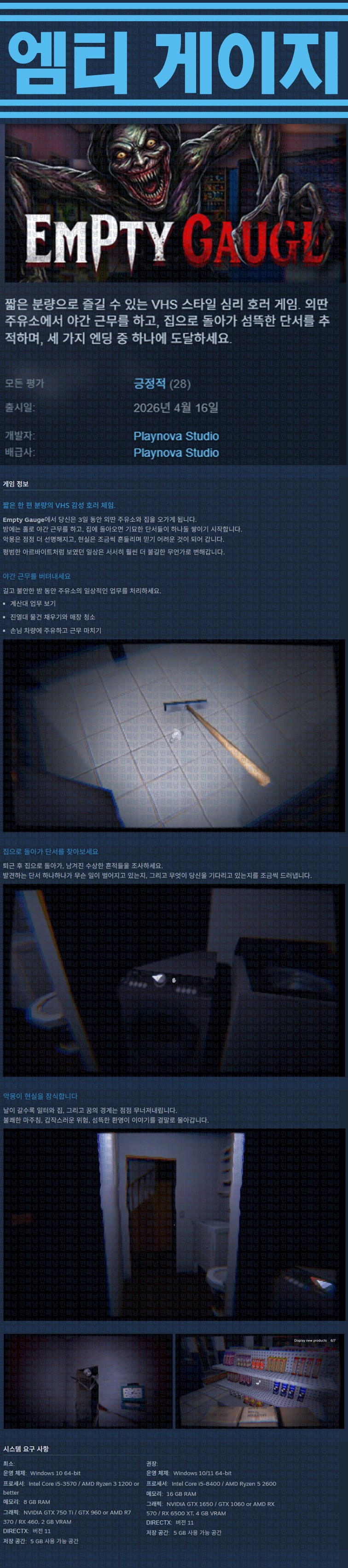 sports_esports 게임 한글무설치 엠티 게이지 [한글무설치] 엠티 게이지 v20260419 personze*** calendar_today2026.04.22 visibility5,038 실행Empty Gauge.exe26.04.19 update 이지크립트:0000 download 다운로드 1개 파일 folder_zip Empty Gauge.zip.ezc 170 MB download