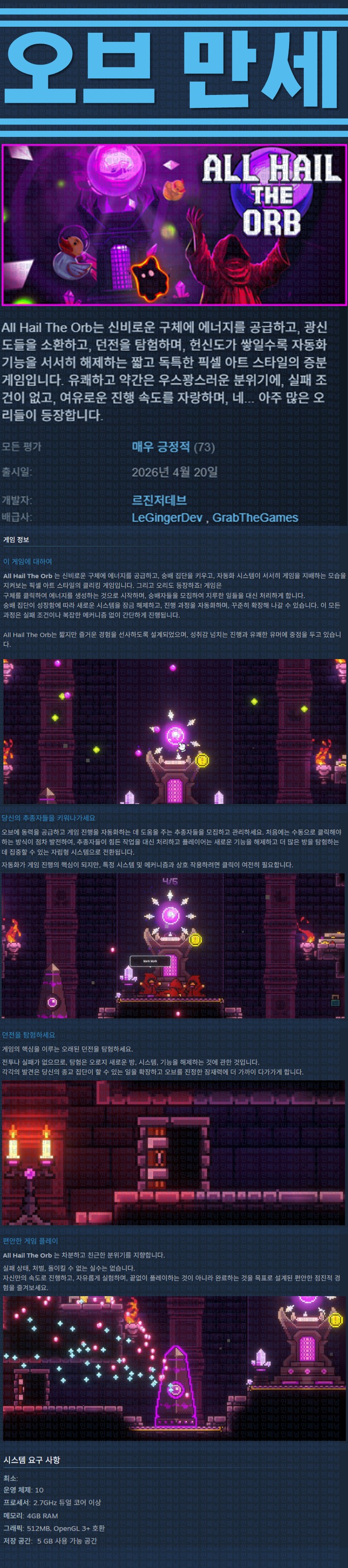 sports_esports 게임 한글무설치 오브 만세 [한글무설치] 오브 만세 v20260420 personze*** calendar_today2026.04.21 visibility6,660 실행All Hail the Orb.exe26.04.20 신작 이지크립트:0000 download 다운로드 1개 파일 folder_zip All Hail the Orb.zip.ezc 124 MB download