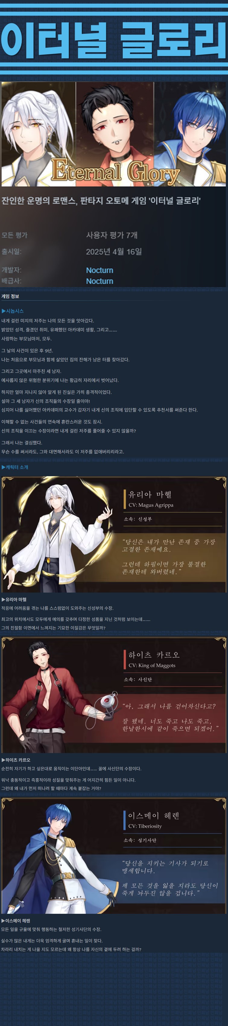 sports_esports 게임 한글무설치 이터널 글로리 [한글무설치] 이터널 글로리 v20260324 personze*** calendar_today2026.04.23 visibility4,747 실행EternalGlory.exe26.03.24 update 이지크립트:0000 download 다운로드 1개 파일 folder_zip Eternal Glory.zip.ezc 624 MB download