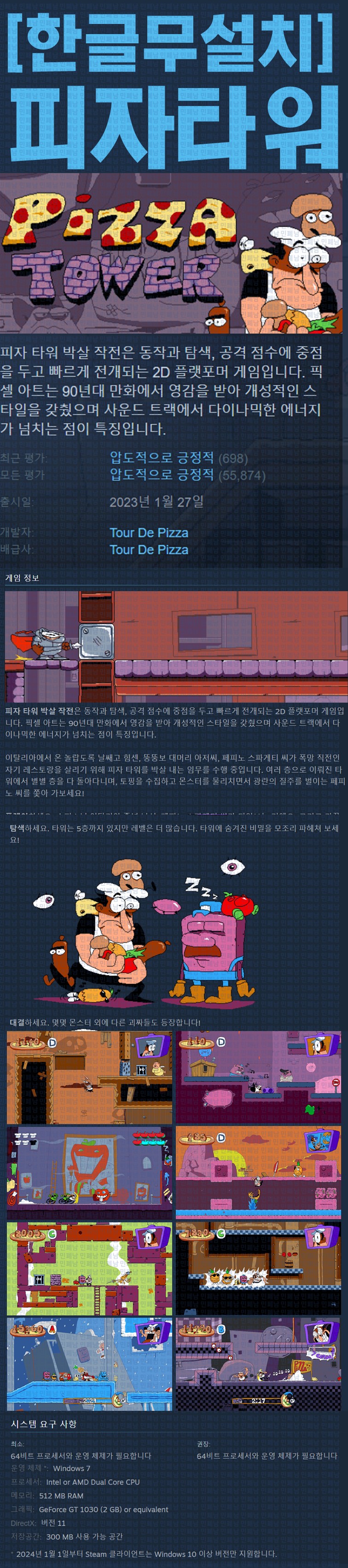 sports_esports 게임 한글무설치 피자 타워 [한글무설치] 피자 타워 v1.1.28 personze*** calendar_today2026.04.21 visibility5,213 실행PizzaTower.exe 25.07.02 update 이지크립트:0000 download 다운로드 1개 파일 folder_zip Pizza Tower Build.16727860.zip.ezc 285 MB download