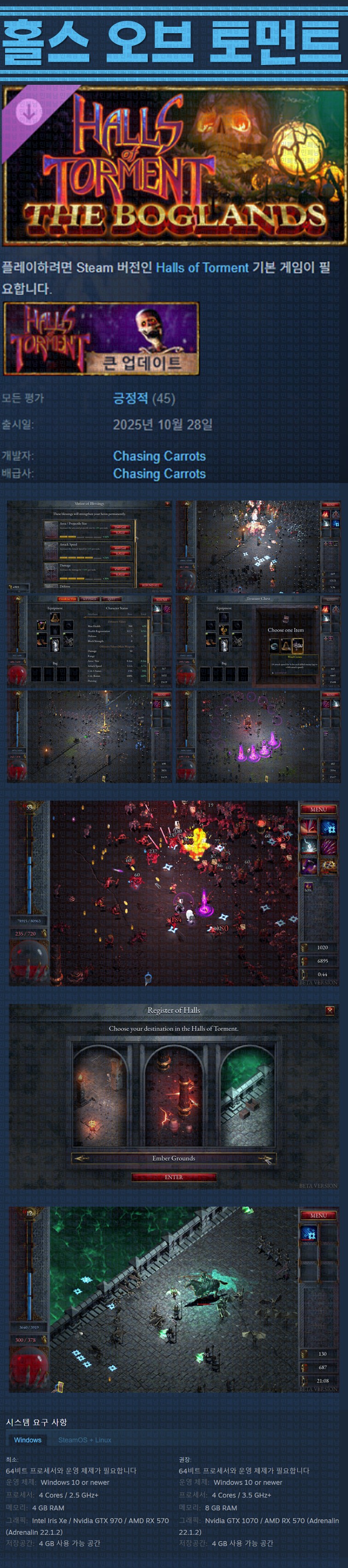 sports_esports 게임 한글무설치 홀스 오브 [한글무설치] 홀스 오브 토먼트 v20260414 personze*** calendar_today2026.04.23 visibility6,519 실행HallsOfTorment.exe26.04.14 update 이지크립트:0000 download 다운로드 1개 파일 folder_zip Halls of Torment.zip.ezc 893 MB download