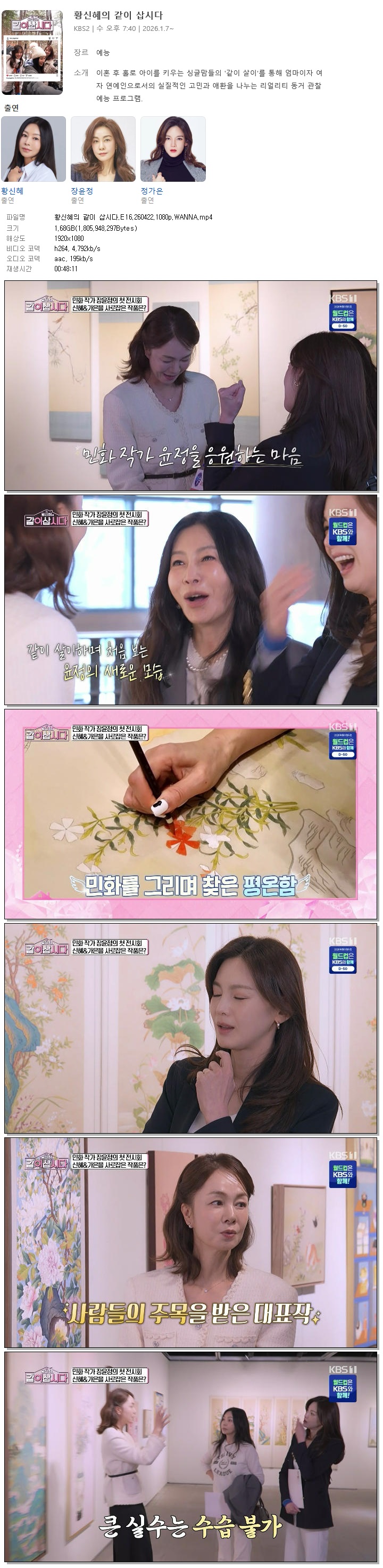 cast 동영상 황신혜의 같이 삽시다 황신혜의 같이 삽시다.E16.260422.1080p.WANNA person홀리*** calendar_today2026.04.22 visibility5,304 download 다운로드 1개 파일 folder_zip 황신혜의 같이 삽시다.E16.260422.1080p.WANNA.mp4 1.7 GB download