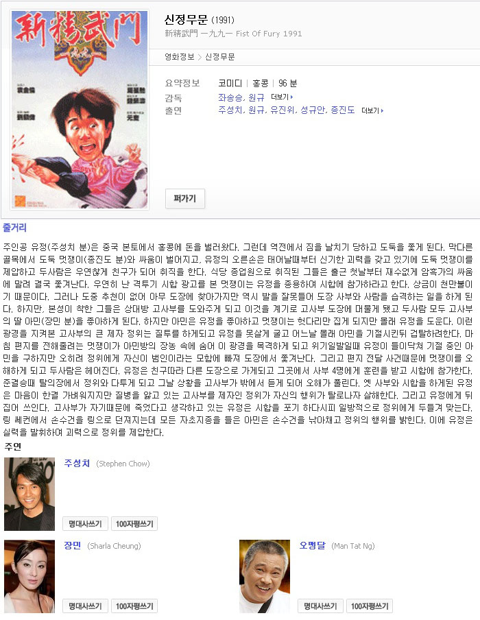 movie 영화 희귀자료 명작 주성치의 희귀자료 명작 주성치의 신.정.무.문 겁나웃김 화질자막완벽 person전설*** calendar_today2026.04.22 visibility4,079 download 다운로드 4개 파일 folder_zip Fist.Of.Fury.1991 XviD.AC3.2AUDIO.CD1-WAF.avi 1.4 GB download folder_zip Fist.Of.Fury.1991 XviD.AC3.2AUDIO.CD1-WAF.smi download folder_zip Fist.Of.Fury.1991 XviD.AC3.2AUDIO.CD2-WAF.avi download folder_zip Fist.Of.Fury.1991 XviD.AC3.2AUDIO.CD2-WAF.smi download