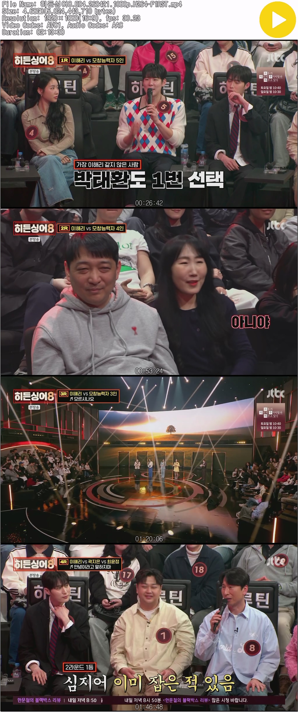 cast 동영상 히든싱어8 E04 H264 히든싱어8.E04.260421.1080p.H264-F1RST personoh*** calendar_today2026.04.21 visibility7,737 download 다운로드 1개 파일 folder_zip 히든싱어8.E04.260421.1080p.H264-F1RST.mp4 4.7 GB download