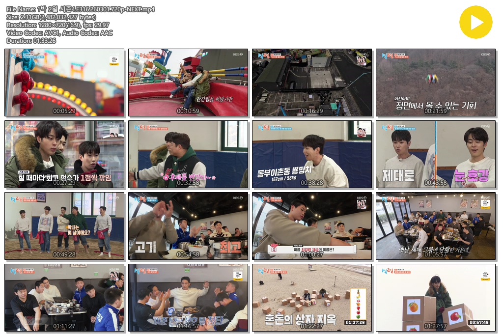 cast 동영상 1박 2일 시즌4E316260301720p 1박 2일 시즌4.E316.260301.720p-NEXT personse*** calendar_today2026.01.01 visibility3,229 download 다운로드 1개 파일 folder_zip 1박 2일 시즌4.E316.260301.720p-NEXT.mp4 2.3 GB download