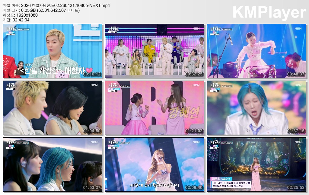 cast 동영상 한일가왕전 E02 NEXT 2026 한일가왕전.E02.260421.1080p-NEXT person난나*** calendar_today2026.04.22 visibility5,000 download 다운로드 1개 파일 folder_zip 2026 한일가왕전.E02.260421.1080p-NEXT.mp4 6.1 GB download