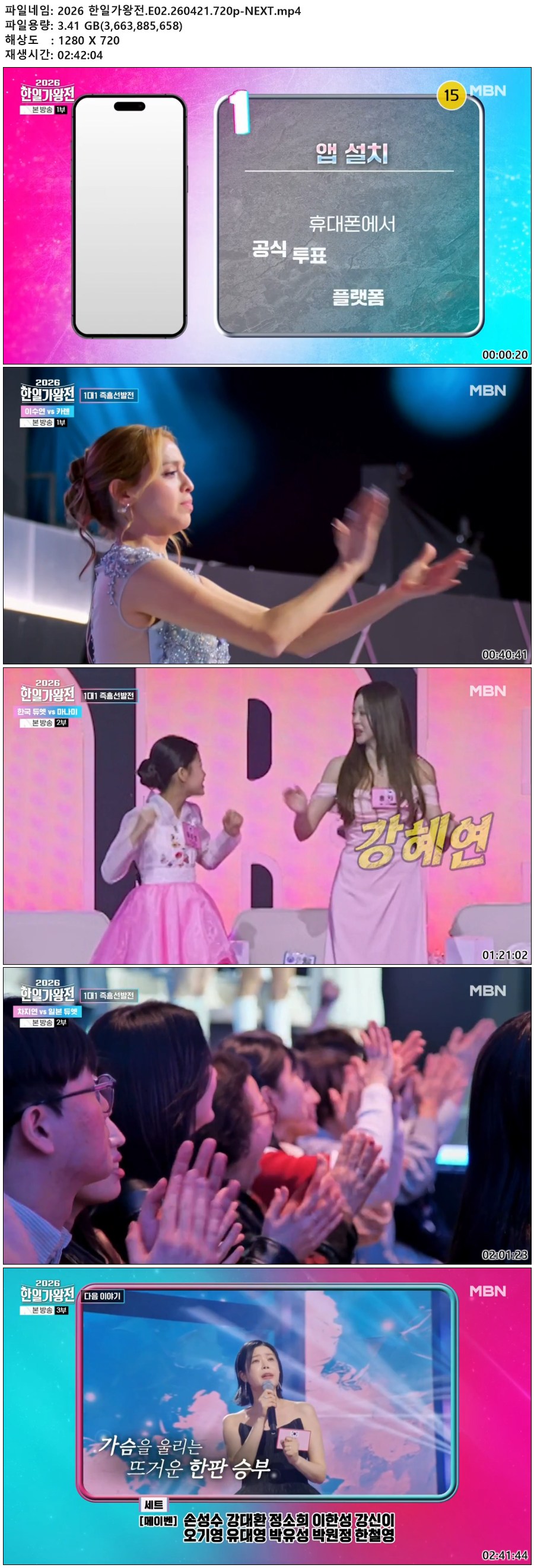 cast 동영상 한일가왕전 E02 NEXT 2026 한일가왕전.E02.260421.720p-NEXT personqk*** calendar_today2026.04.22 visibility4,707 download 다운로드 1개 파일 folder_zip 2026 한일가왕전.E02.260421.720p-NEXT.mp4 3.4 GB download