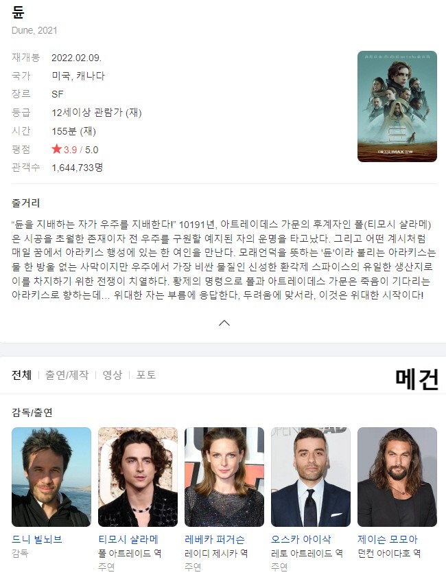 movie 영화 파트1 Dune 완벽 4K [듄, 파트1] Dune. 2021 (완벽 자막, 초고화질) person메건*** calendar_today2026.04.21 visibility6,276 download 다운로드 2개 파일 folder_zip 듄 파트1. 4K (파일, 제목, 스샷 도용 금지!! 작성자 메건).mkv 6.9 GB download folder_zip 듄 파트1. 4K (파일, 제목, 스샷 도용 금지!! 작성자 메건).srt download