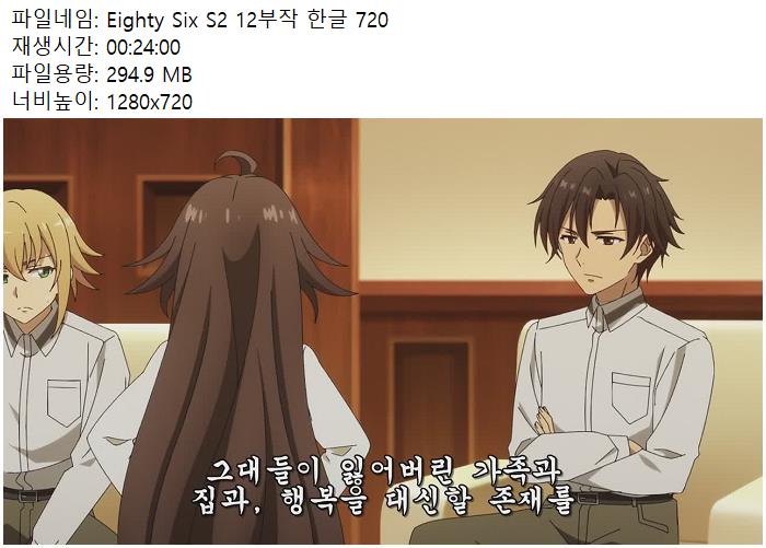 animation 애니 Eighty Six S2 Eighty Six S2 12부작 한글 720 06-12 person남미*** calendar_today2026.04.21 visibility6,033 download 다운로드 7개 파일 folder_zip Eighty Six S2 - 06 (BS11 1280x720 x264 AAC).mp4 2.3 GB download folder_zip Eighty Six S2 - 07 (BS11 1280x720 x264 AAC).mp4 download folder_zip Eighty Six S2 - 08 (BS11 1280x720 x264 AAC).mp4 download folder_zip Eighty Six S2 - 09 (BS11 1280x720 x264 AAC).mp4 download folder_zip Eighty Six S2 - 10 (BS11 1280x720 x264 AAC).mp4 download folder_zip Eighty Six S2 - 11 (BS11 1280x720 x264 AAC).mp4 download folder_zip Eighty Six S2 - 12 (BS11 1280x720 x264 AAC).mp4 download