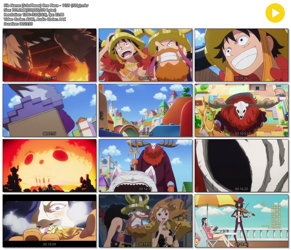 animation 애니 SubsPlease 원피스 1280x720 [SubsPlease] 원피스 - 1159 (1280x720) person에어*** calendar_today2026.04.27 visibility4,749 download 다운로드 2개 파일 folder_zip [SubsPlease] One Piece - 1159 (720p).mkv 701 MB download folder_zip [SubsPlease] One Piece - 1159 (720p).smi download