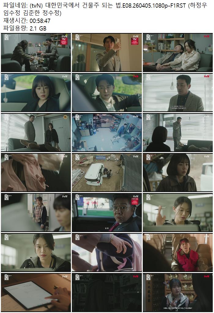 live_tv 드라마 tvN 대한민국에서 건물주 (tvN) 대한민국에서 건물주 되는 법.E08.260405.1080p-F1RST (하정우 임수정 김준한 정수정) personce*** calendar_today2026.04.24 visibility5,282 download 다운로드 1개 파일 folder_zip (tvN) 대한민국에서 건물주 되는 법.E08.260405.1080p-F1RST (하정우 임수정 김준한 정수정).mp4 2.1 GB download