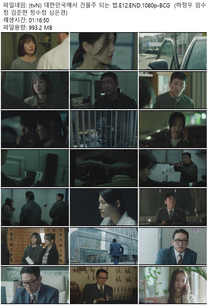 live_tv 드라마 tvN 대한민국에서 건물주 (tvN) 대한민국에서 건물주 되는 법.E12.END.1080p-BCG (하정우 임수정 김준한 정수정 심은경) personce*** calendar_today2026.04.23 visibility6,698 download 다운로드 1개 파일 folder_zip (tvN) 대한민국에서 건물주 되는 법.E12.END.1080p-BCG (하정우 임수정 김준한 정수정 심은경).mkv 993 MB download
