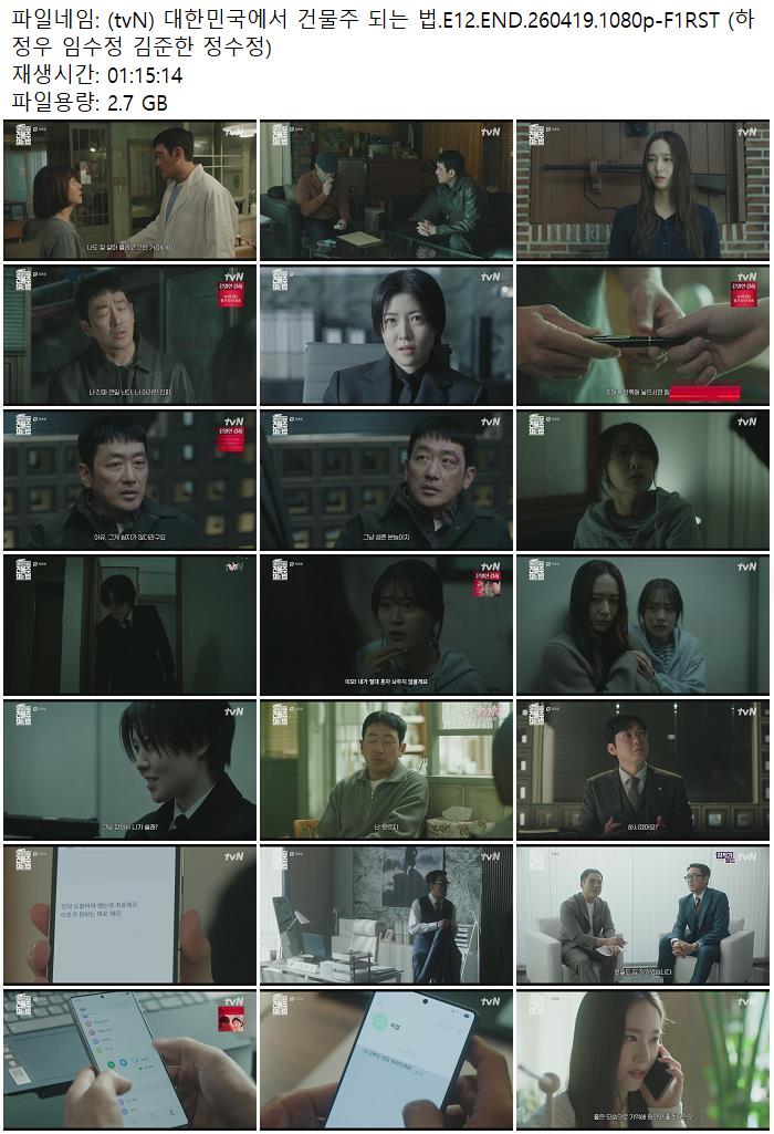 live_tv 드라마 tvN 대한민국에서 건물주 (tvN) 대한민국에서 건물주 되는 법.E12.END.260419.1080p-F1RST (하정우 임수정 김준한 정수정) personce*** calendar_today2026.04.24 visibility5,810 download 다운로드 1개 파일 folder_zip (tvN) 대한민국에서 건물주 되는 법.E12.END.260419.1080p-F1RST (하정우 임수정 김준한 정수정).mp4 2.7 GB download